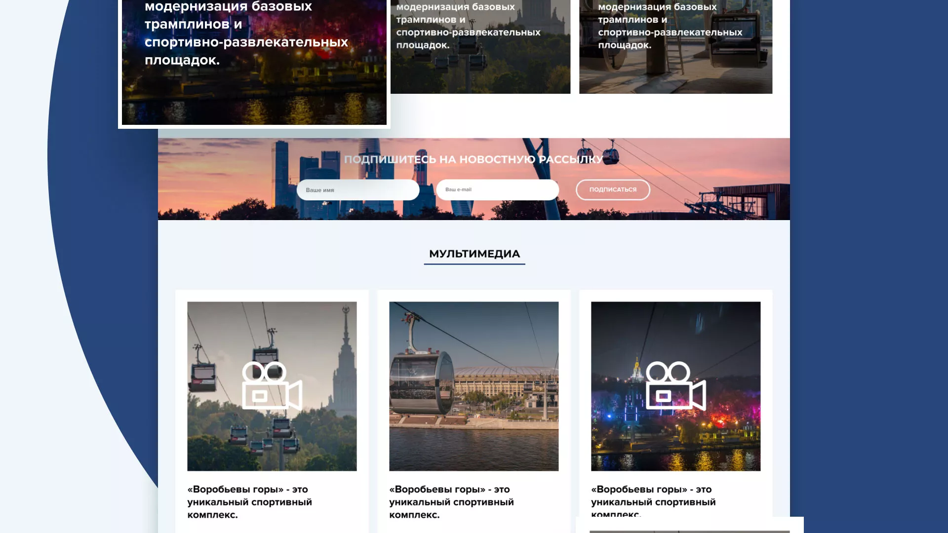 Разработка официального сайта в Хилоке для спортивно-развлекательного комплекса «Воробьёвы горы».