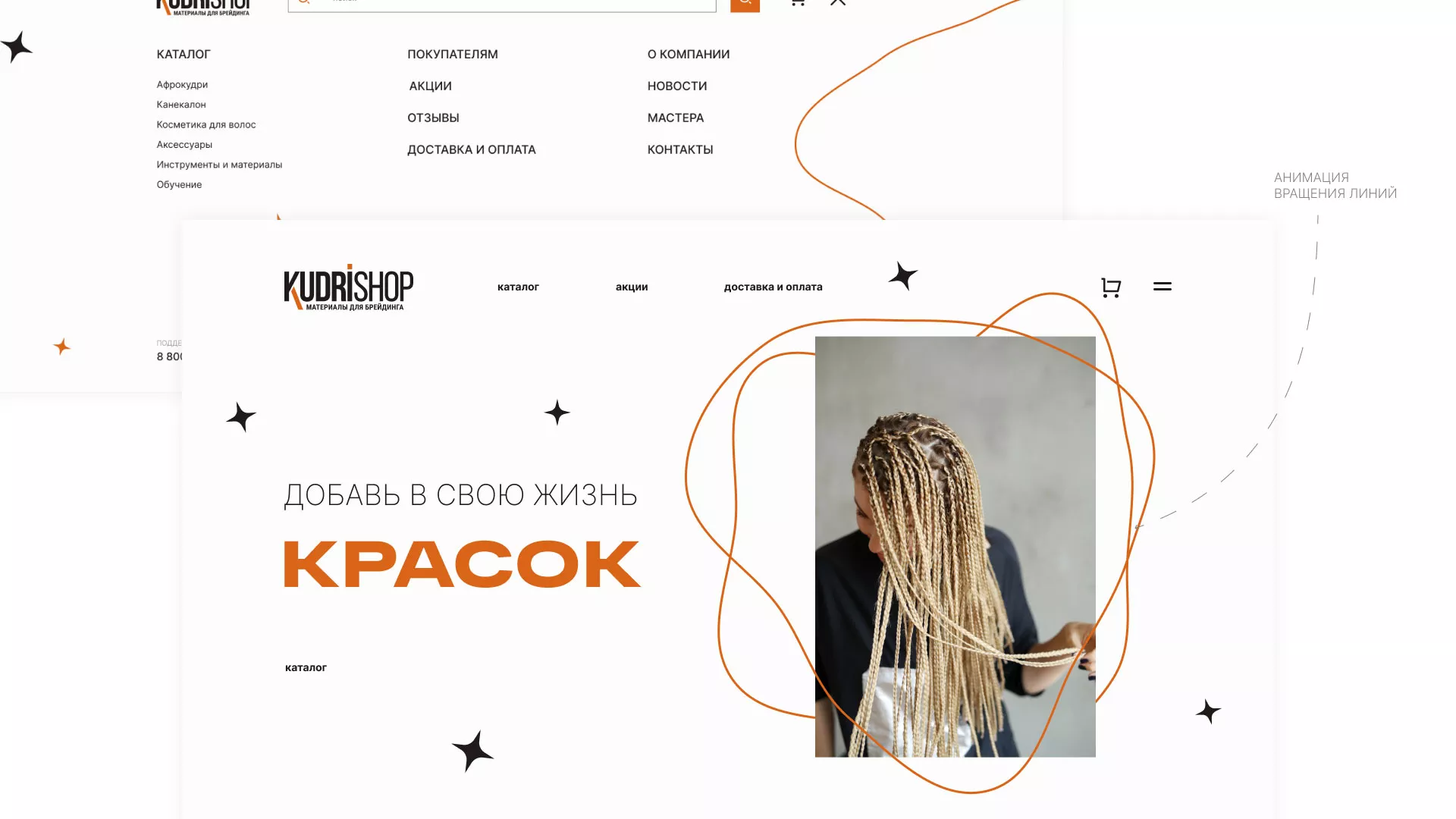 Создание интернет-магазина по продаже афрокудрей и других материалов для брендинга в Хилоке. Целевая аудитория — молодые и современные девушки, желающие разнообразить свой образ.